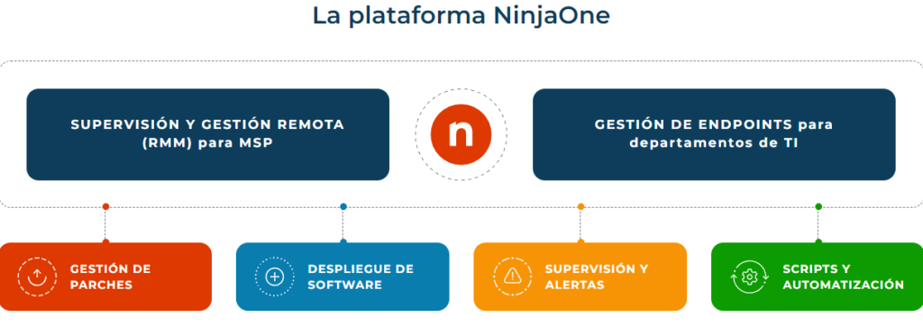 NinjaOne, el software de monitorización y manejo remoto convertirá sus equipos en una plataforma confiable y segura. Además, ahorrará centenares de horas de servicio y mejorará su seguridad manteniéndolo actualizado. El servicio RMM gestionado, ofrece la gestión de sus sistemas el mantenimiento integral de la herramienta.